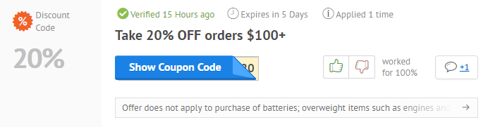 AutoZone Coupons June 2022 Use the code and get 20% off orders over $100 plus get free shipping on orders over $35 at AutoZone. Get Code ⏰ Expired 15th May 2021 Terms Coupon AutoZone • Coupon 20% Off Orders Over $120 at...